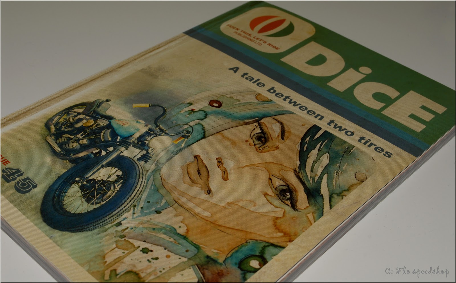 A travers une ligne éditoriale éclectique, dice traite du monde chopper et custom (même hot rod) entre la Californie, la "perfide Albion"...( perfide car sa législation permet de rouler avec tout et n'importe quoi, pourvu que l'on s'acquitte de lourdes taxes... ) et le reste du monde car beaucoup d'articles proviennent des quatre points cardinaux . Les photos sont à l'avenant, et la culture web également. Tu y trouves aussi de cafés corsés, de yougtimers tapés jusqu'à l'os, et quelques pépées bien dans le ton...